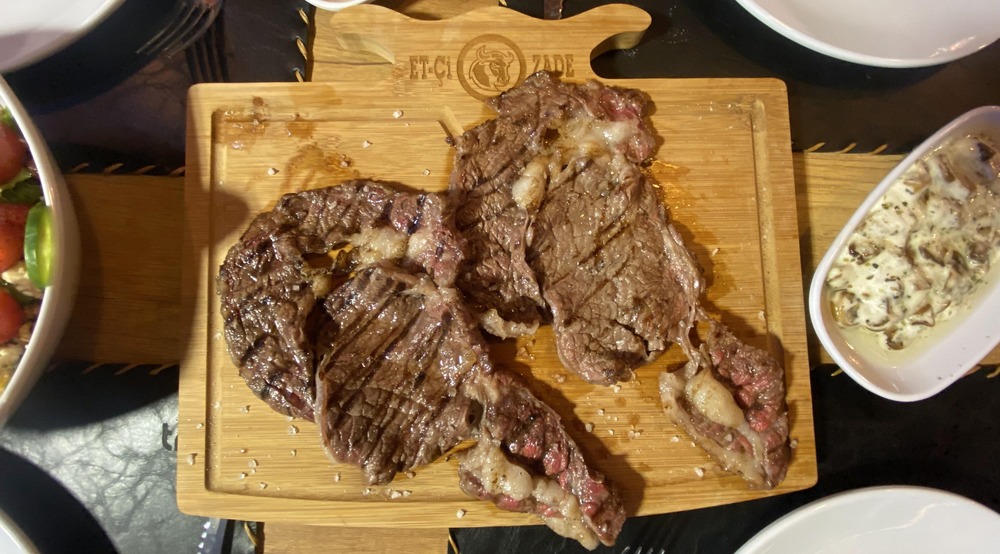 Porsiyon 300gr, Izgara patates, Kremalı mantar, Köz sarımsak, Karamelize soğan
